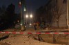 Da bei der Explosion eine Wasserleitung beschädigt wurde, pumpten die Einsatzkräfte zunächst das ausgetretene Wasser aus dem mehrere Meter breiten Explosionskrater.