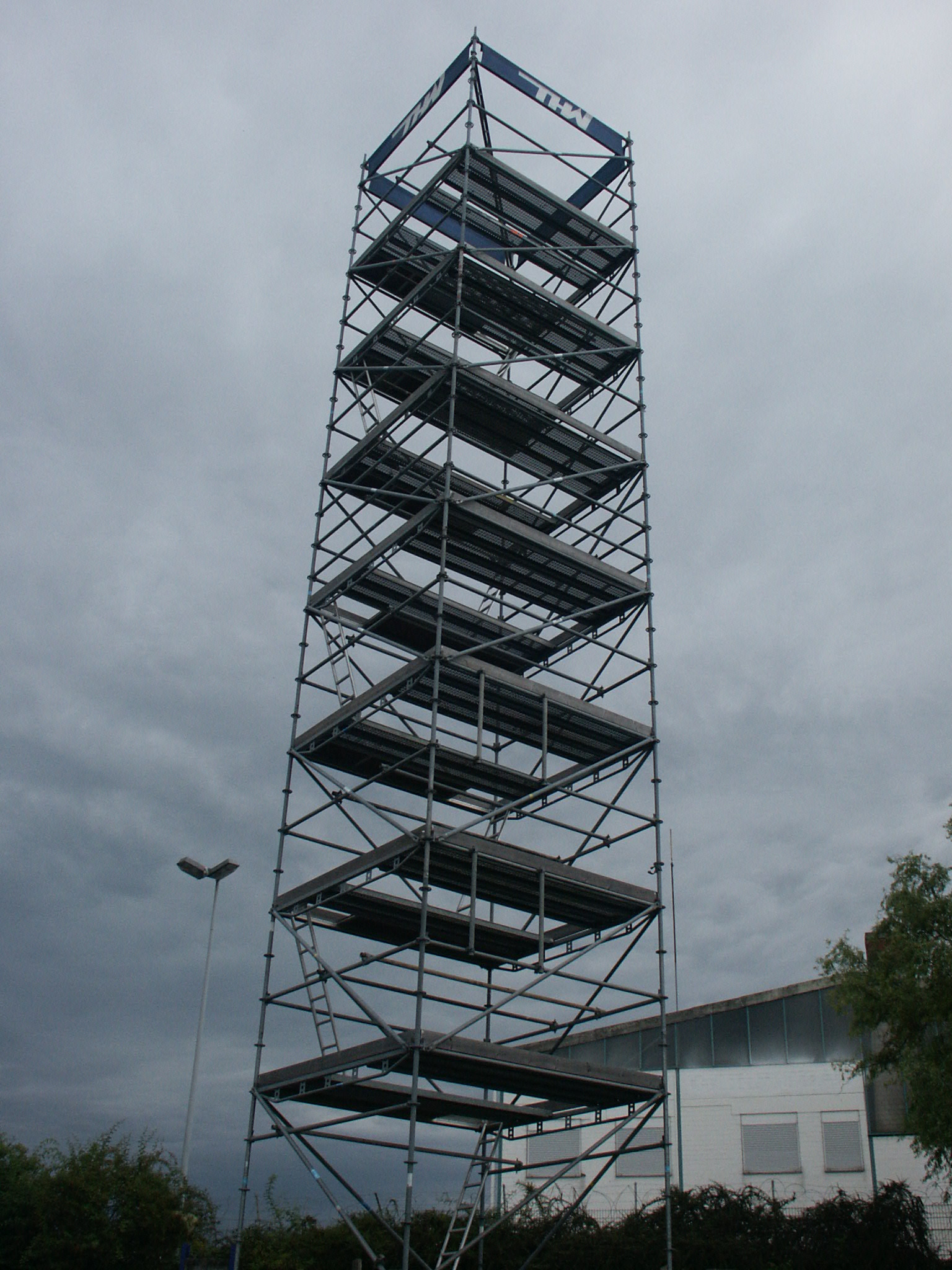 Dieser wurde im Jahre 2000 nach dem Orkan Wibke neu errichtet. Durch die großzügige Spende eines Gerüstsystemherstellers wurde der Turm mit einer Höhe 16 m bei einer Grundfläche von 3 x 3 m aufgebaut. Um die Standsicherheit, auch bei Stürmen zu gewährleisten, wurde extra ein Betonfundament von ca 15 m³ gegossen. Der Bau des Fundaments wurde durch den Verein sichergestellt.
